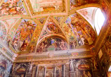 The Papal apartment (pre-Francis) is the tall structure on the right. Pope Francis lives down the hill in something more humble. A view of one of the ceilings in the apartments.