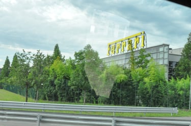 We had a nice breakfast but were delayed by a shower drain that didn't. Missed our train to Modena. The next 'ordinary' train would arrive after our scheduled shuttle bus to Maranello and Ferrari. We had to pay up for the extra-ordinary train and made it with seconds to spare.