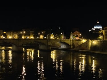 The end of day 2. An evening walk in Trastavere, along the Tiber riverbank, and by the Castle St. Angelo.