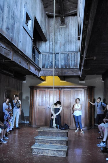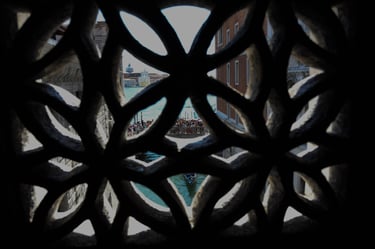 The chamber of the council of 10; one of the torture rooms; a view looking out from the bridge of sighs, and the view out of Giacomo Casanova's cell at the palace. Didn't know he did time...