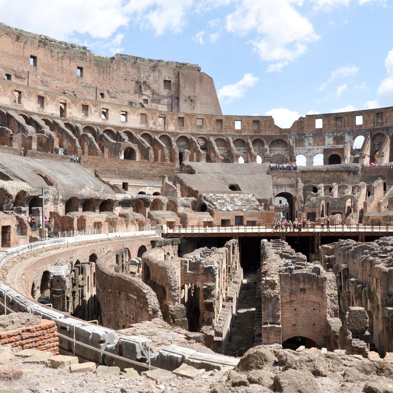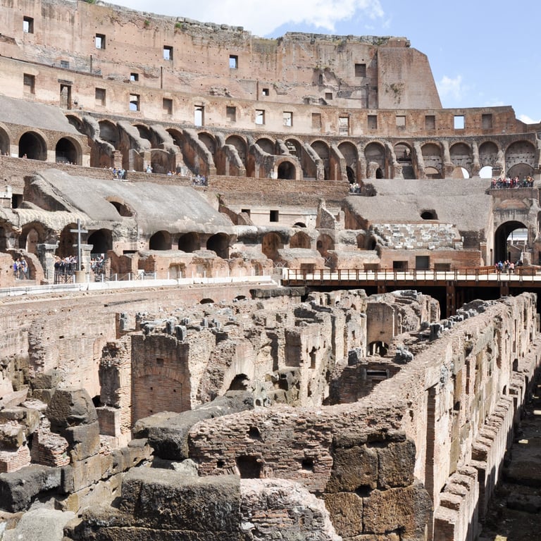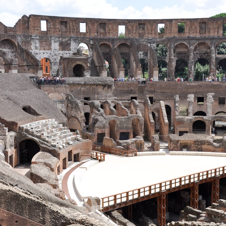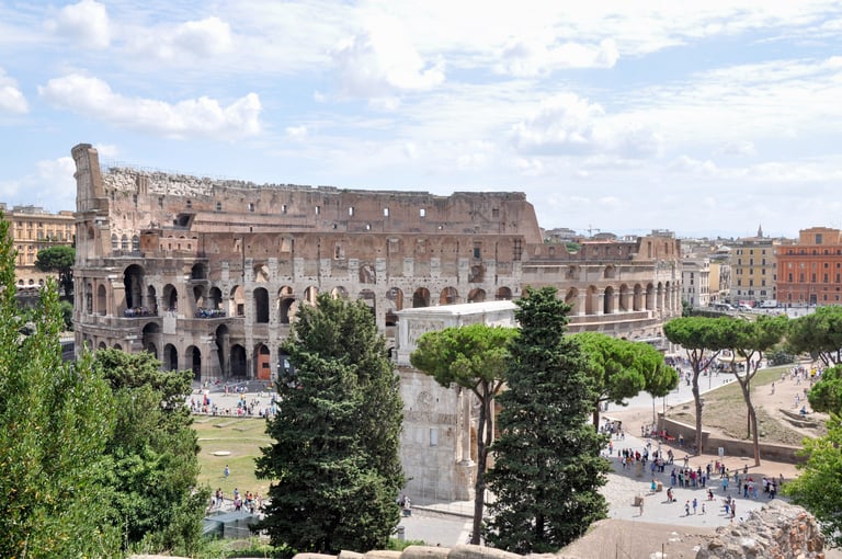 View from atop the Vittoriano and inside the Colosseum